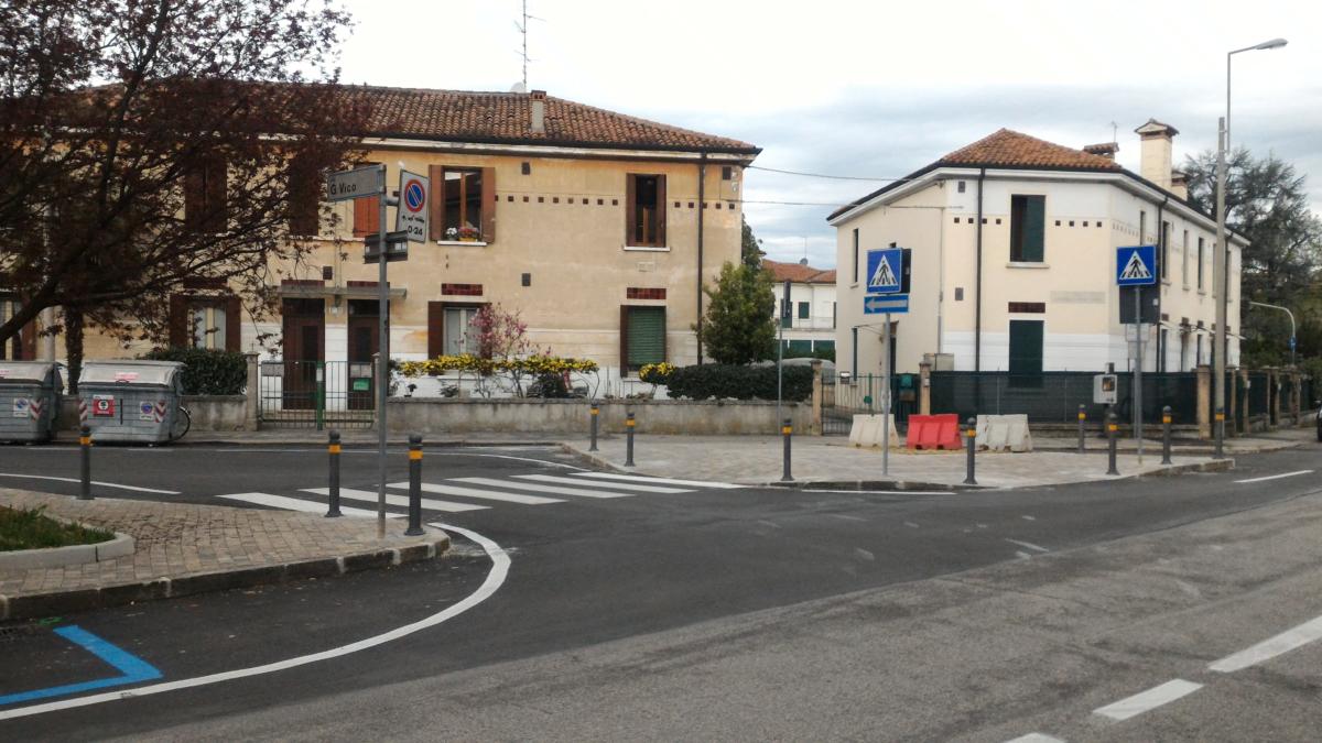 Il percorso ciclopedonale realizzato su sede propria, parallelo a viale B. D’Alviano, si estende da porta San Bortolo fino a via Bacchiglione. La larghezza del percorso ciclopedonale consente un utilizzo agevole e sicuro da parte di pedoni e ciclisti. Questo intervento di riqualificazione urbana comprende anche la sistemazione dell’area all’incrocio tra via G.B. Vico e via Pagliarino, dove sono stati realizzati una piazzetta pubblica e un sistema di nuovi marciapiedi che fungono anche da dissuasori di velocità, per garantire un maggior livello di sicurezza ai pedoni.